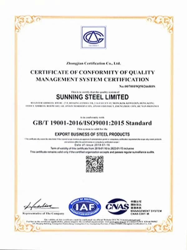 Sunning Steel is China’s leading supplier dedicated to providing its customers with the quickest quotes, best quality products, most competitive prices and fastest possible deliveries and we are responsible for the quality problems within 6 months after the customer receives the goods.